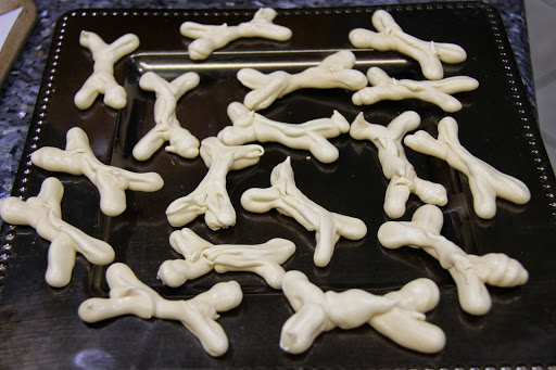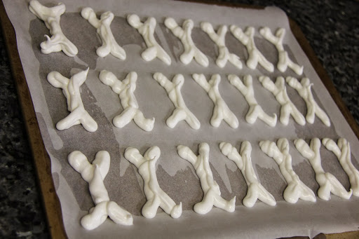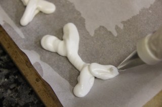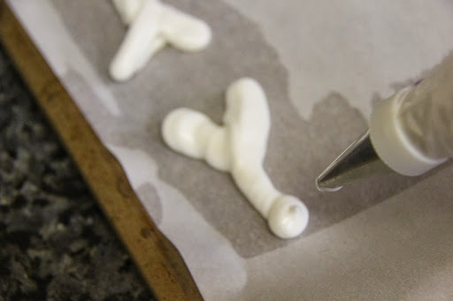 5.With the pastry bag pipe a letter ‘Y’ and then an inverted v at the bottom to form a bone shape.