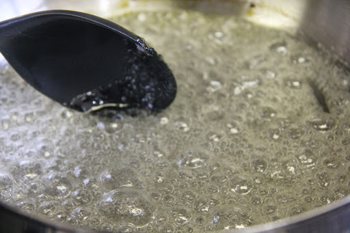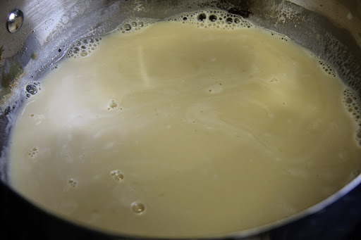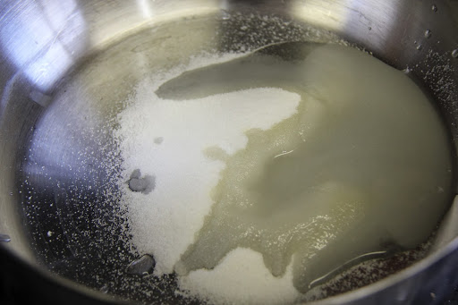 4.Heat the milk and the sugar and stir until the sugar dissolves. Do not overheat or boil.