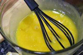 6.In a seperate bowl gently whisk the egg yolks until homogeneous.Do not overwhisk or let it get airy or bubbly.