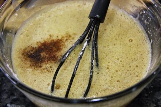 7.Add the milk and pumpkin mixture to the eggs and mix.