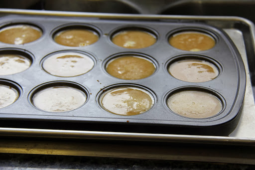 11.In a sheet tray add water 1 inch high. Place the Muffin pan/custard moulds on the sheet tray and place the sheet tray in the oven and bake for 50 minutes until toothpick inserted in center comes out clean.Run a knife along the edges and invert onto individual serving bowls and serve warm or chilled.