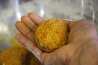 4.Make balls about the size of a lemon and press gently to a disc.