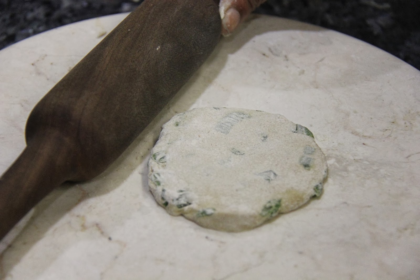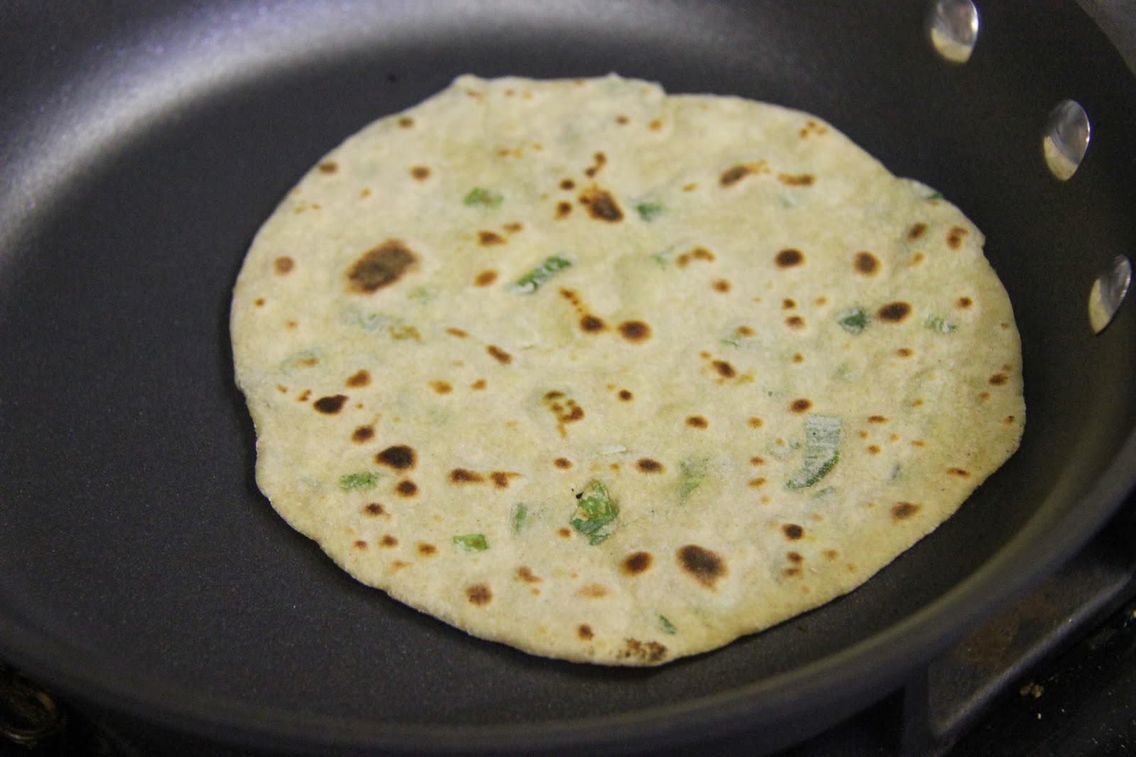 If you are a pro at making rotis,you can add more green onion an be able to make nice rotis without tearing them.