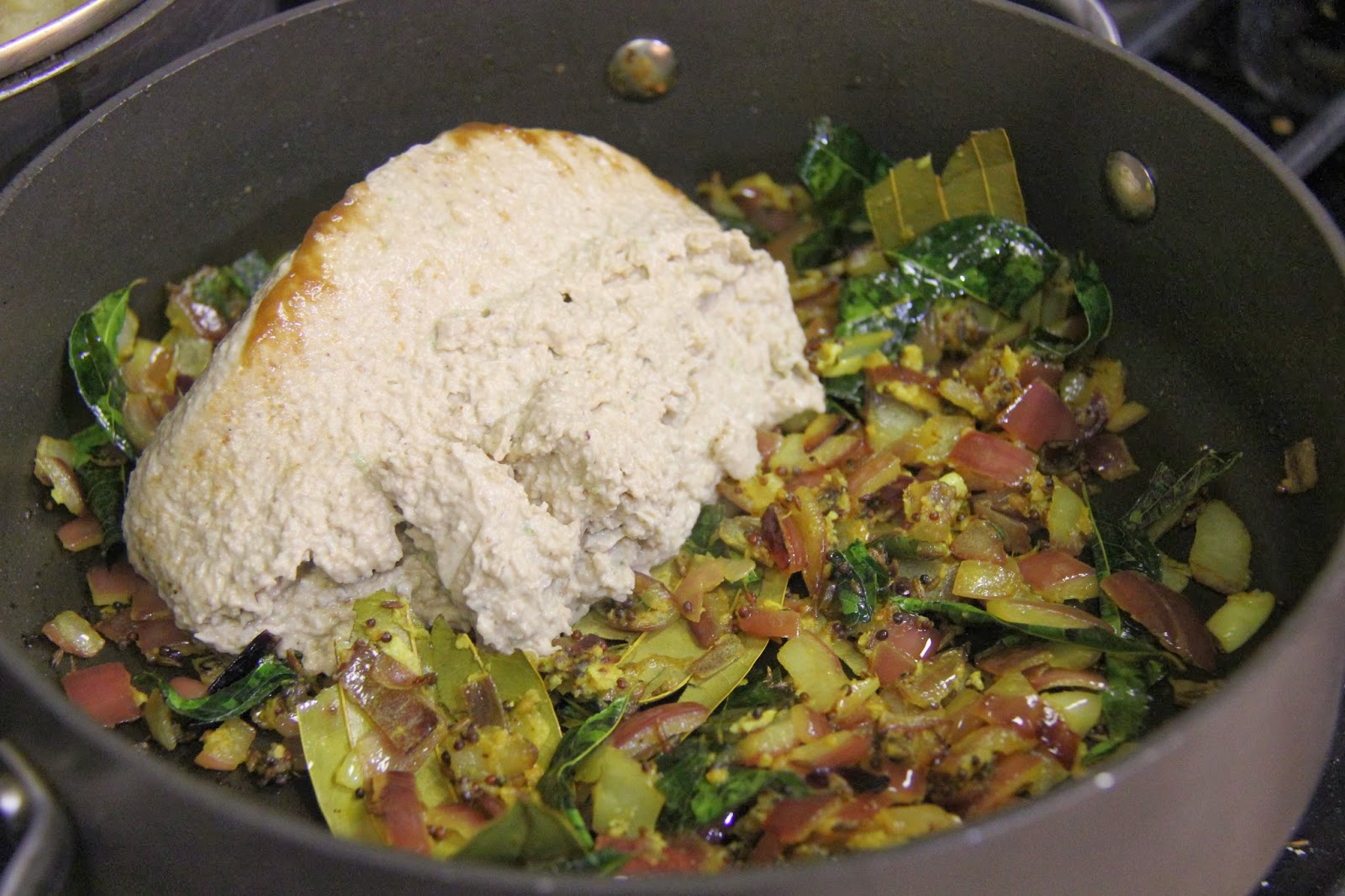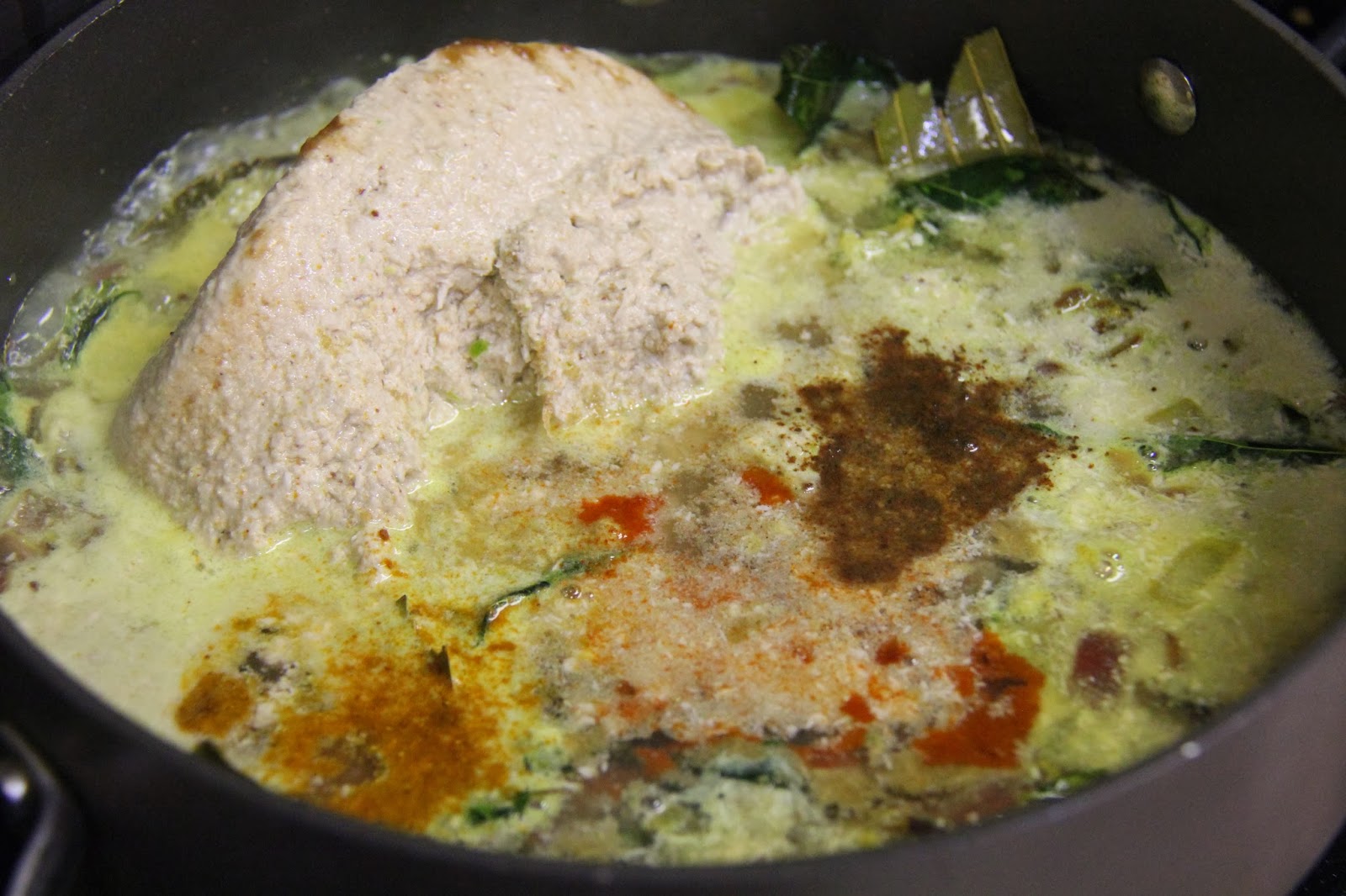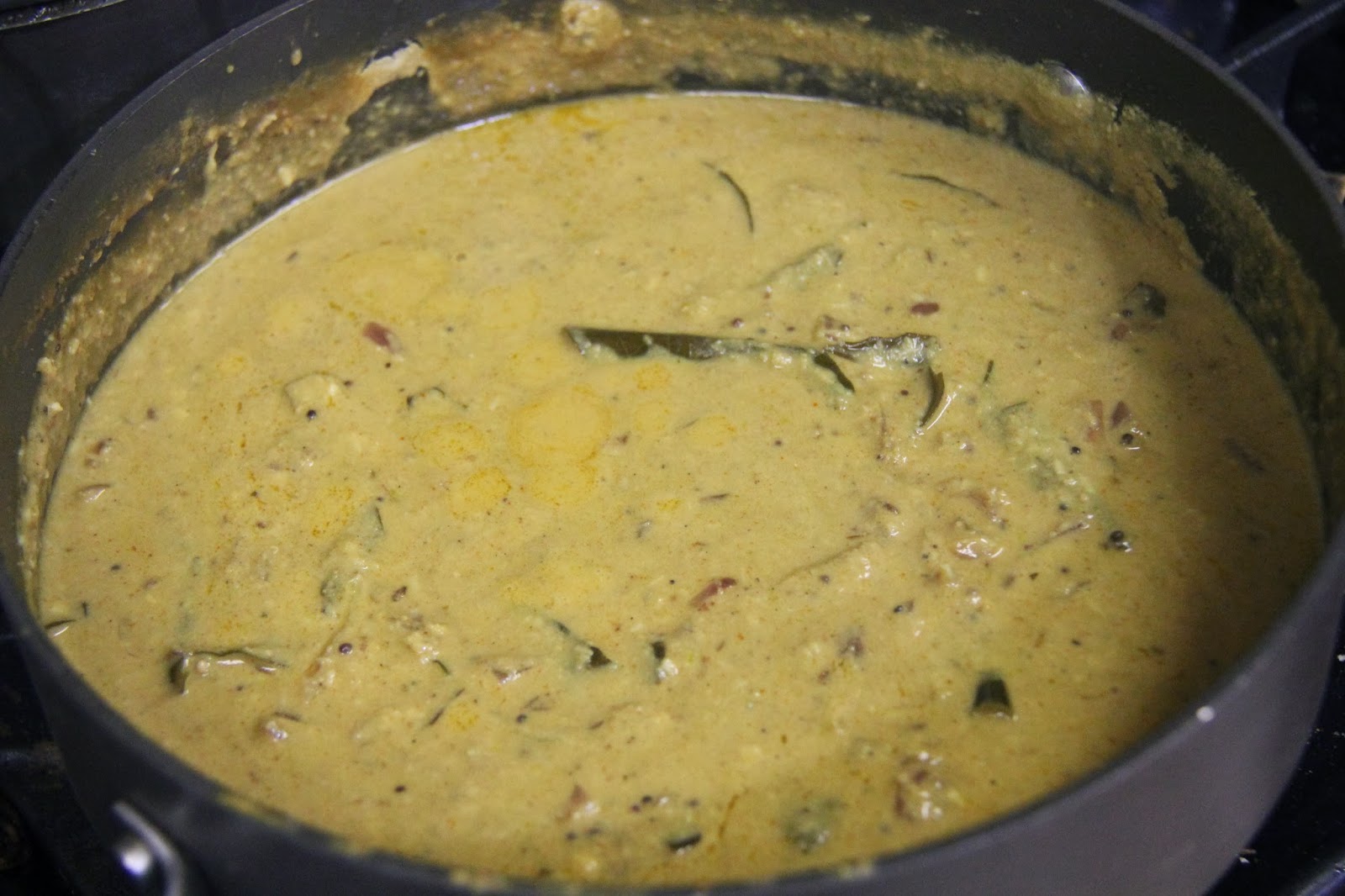 2.Heat the oil in a pan and add the mustard seeds, cumin seeds, bay leaf and curry leaves and let splutter.