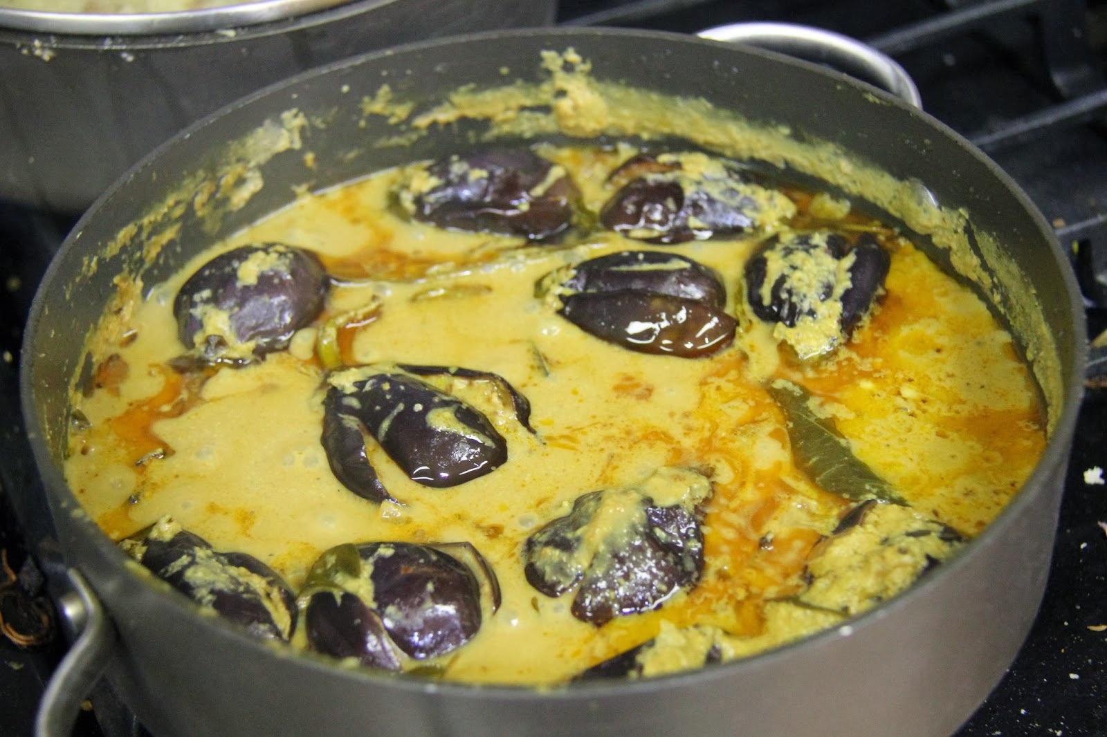 There is a song that goes…Taja Kooralalo Raja evarante,inka chepala vankayenandi..Meaning this dish is the king of all vegetable curries.Every wedding in Andhra serves this dish,the masala is simmered slowly for the flavors to develop and is a delicacy.