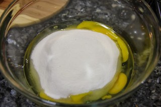 5.Add in the vanilla extract and half the oil and mix in the flour.