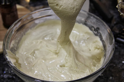 The mixture should be slightly thicker as compared to a cake batter because its a bread.