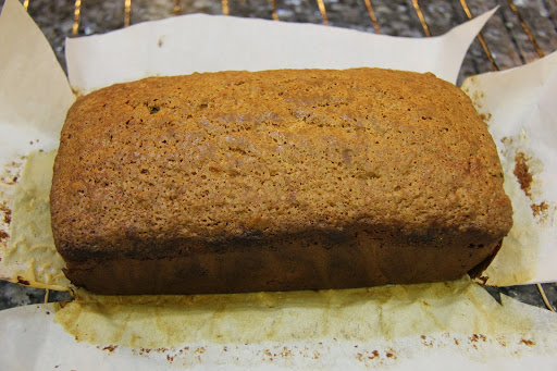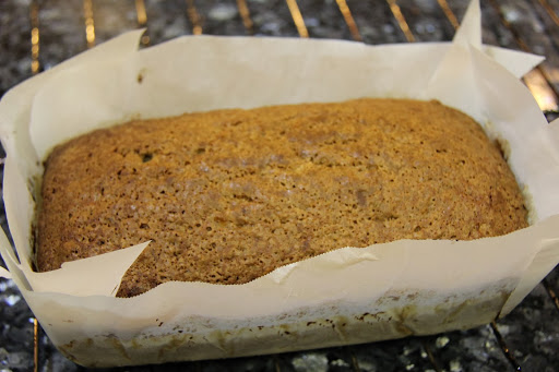 8.Pour into lined loaf pans and bake on the middle rack for 55 minutes-1 hour at 350 degrees F or until toothpick inserted in middle comes out clean.