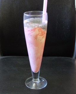5.Layer it with falooda sev and the rose milk and top it off with basil seeds or chia seeds and serve.You can also add a layer of whipped cream and jello pieces on top if you like.