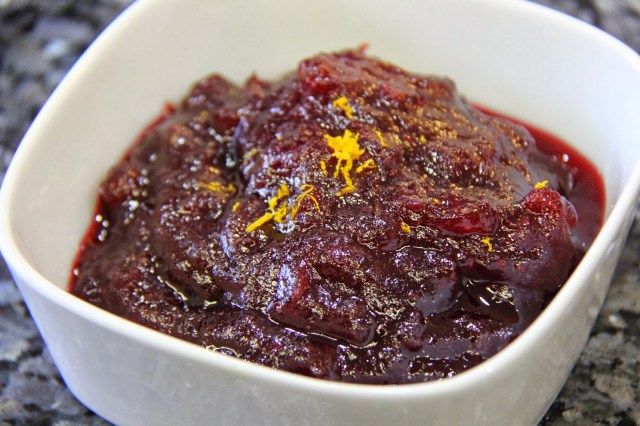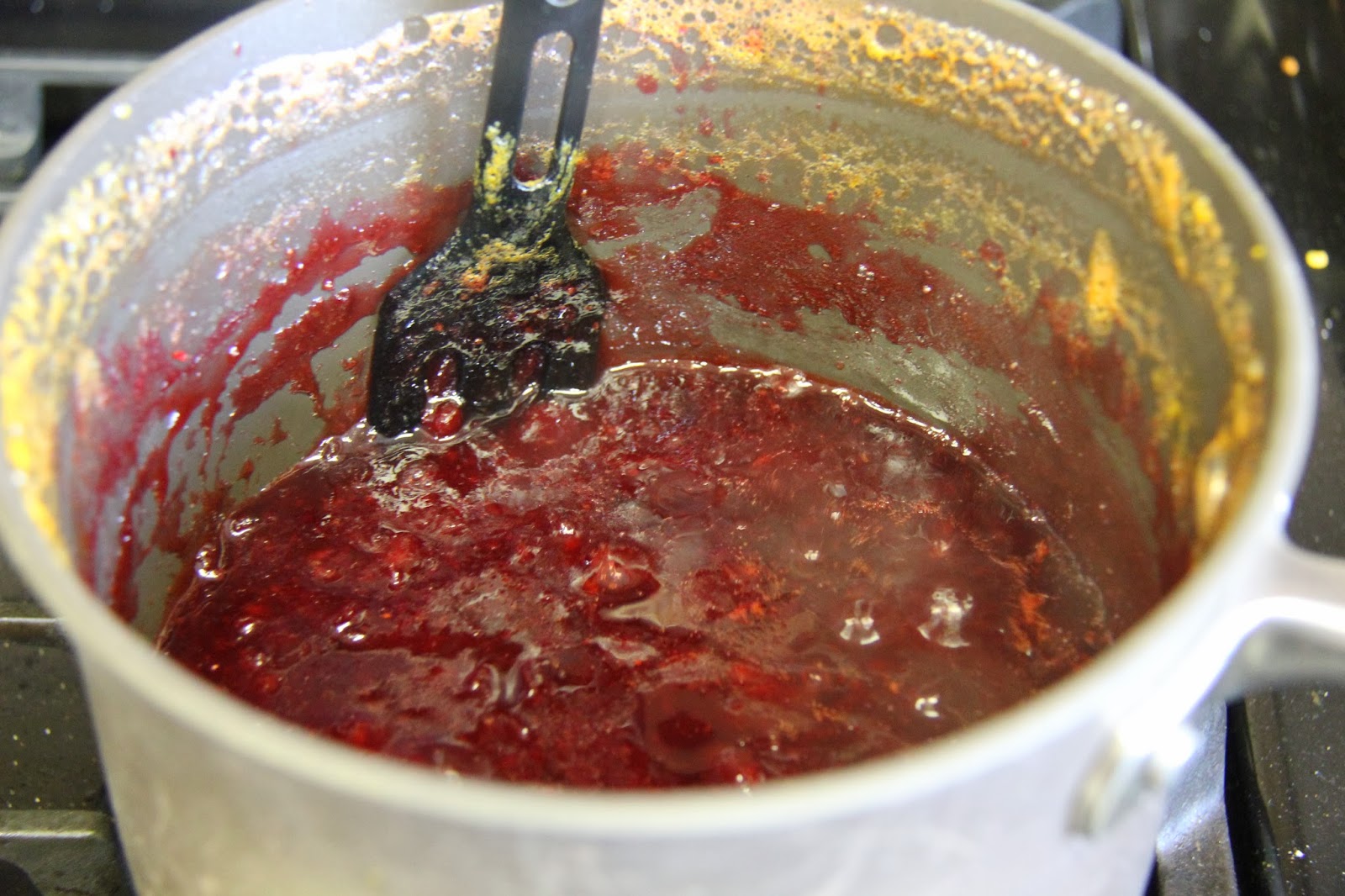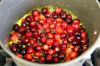 2.Add the cranberries and let cook until the cranberries are soft(about 10 minutes).If you wish you can press the cranberries against the wall of the saucepan to mash them slightly.Remove from stove and let cool completely.
