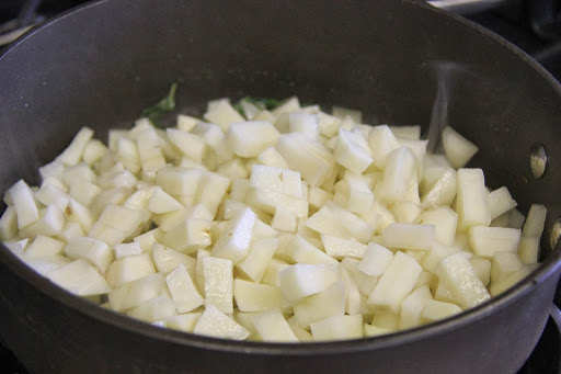 3 huge russet potatoes peeled and diced into 1/2 inch pieces