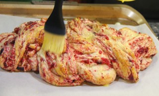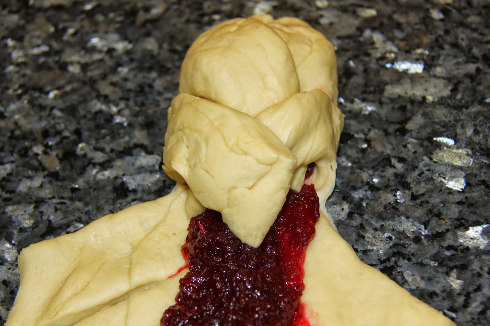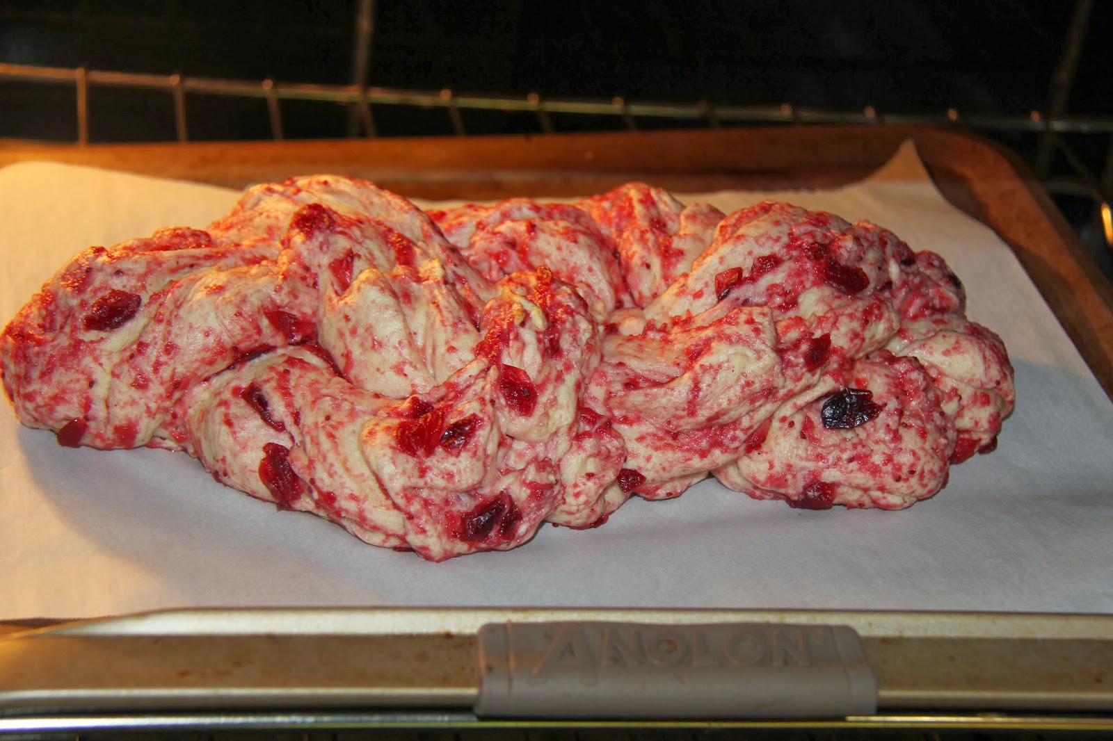 10.The other way is to just mix the cranberry sauce in with the dough and make three ropes and braid it like you put a plait on the hair.