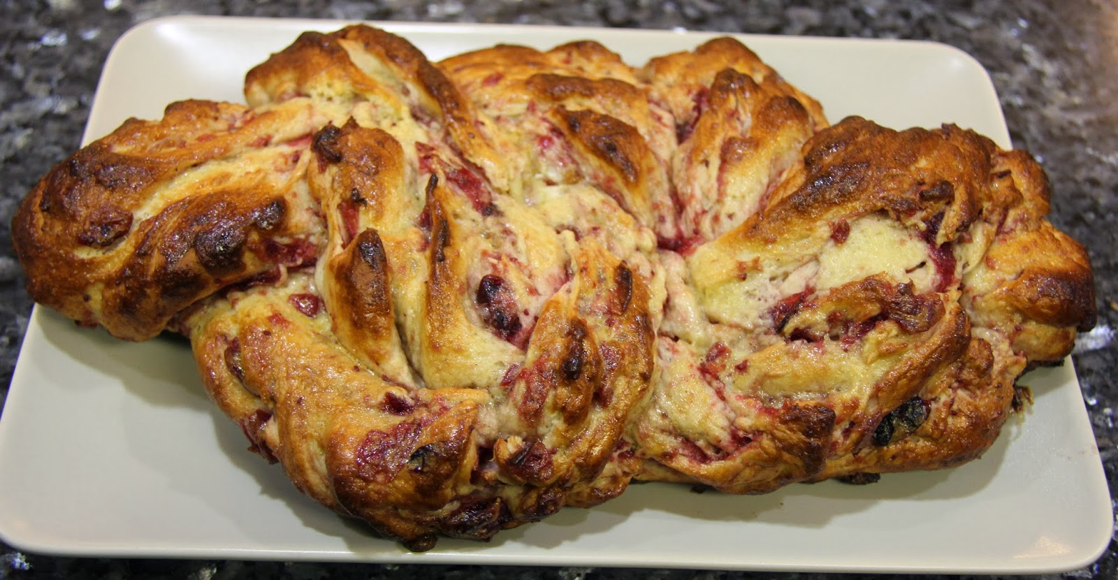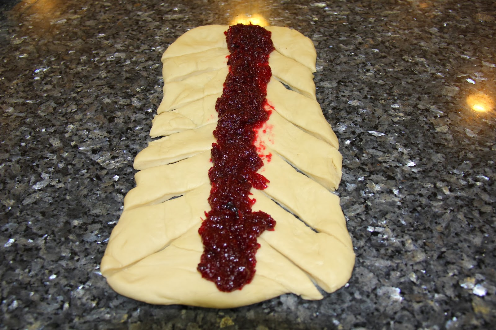 9.Cranberry braid can be done in two ways, flatten out a rectangle shape from the dough,place cranberry sauce in center, cut braids on the side and braid it like you put a plait on the hair.