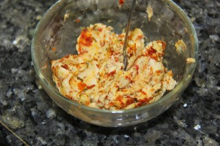 2.Whip the goat cheese, basil and sundried tomato in a food processor until well combined.