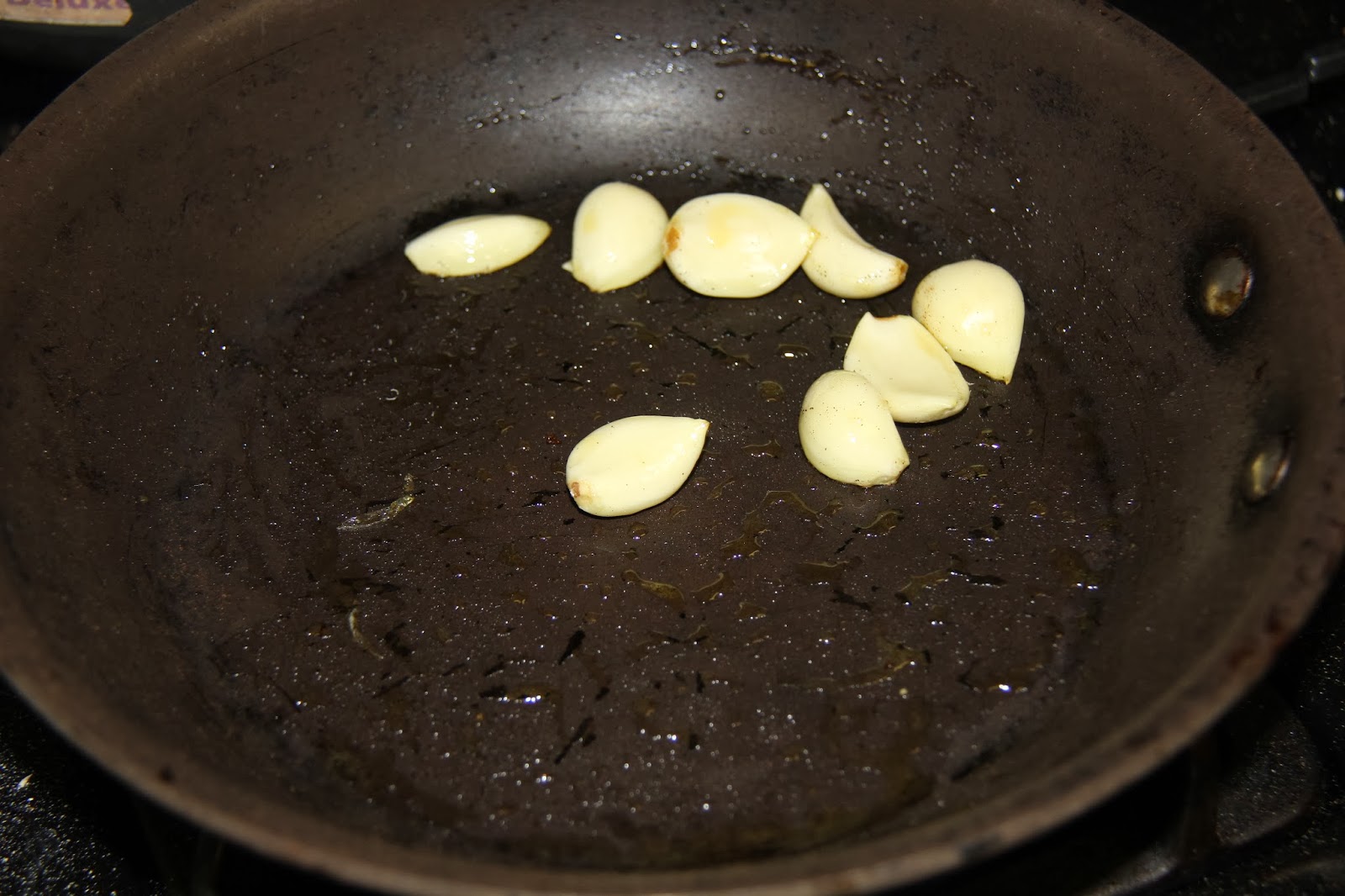 2.Add 1 teaspoon olive oil in a pan and roast the garlic.