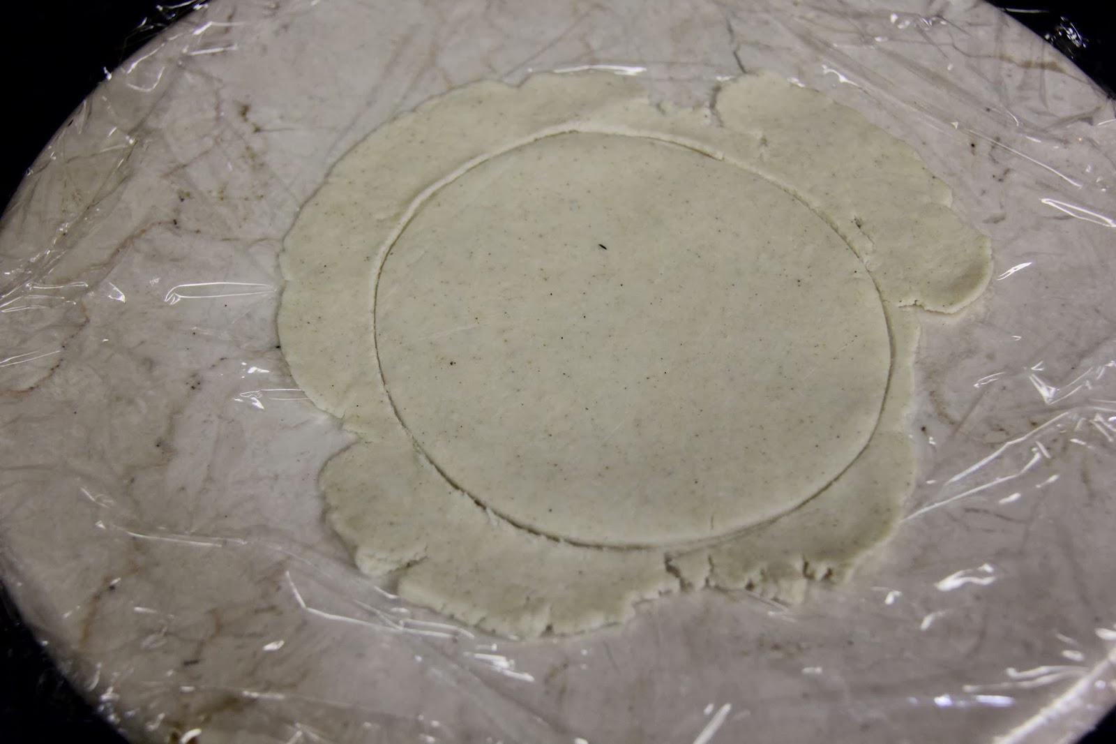 5.People with a lot of experience or those with a roti press get exact round shapes, if you do not have a roti press or aren’t so experienced with this, just remove the top wax paper and cut it into a round. Remove excess to the bowl to reuse.