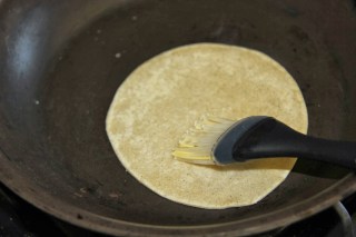 4.Lightly grease a parchment paper or foil or wax paper and place the round on it. Press it down with your fingers. Place another wax paper or foil on top and roll it out into a flatbread.