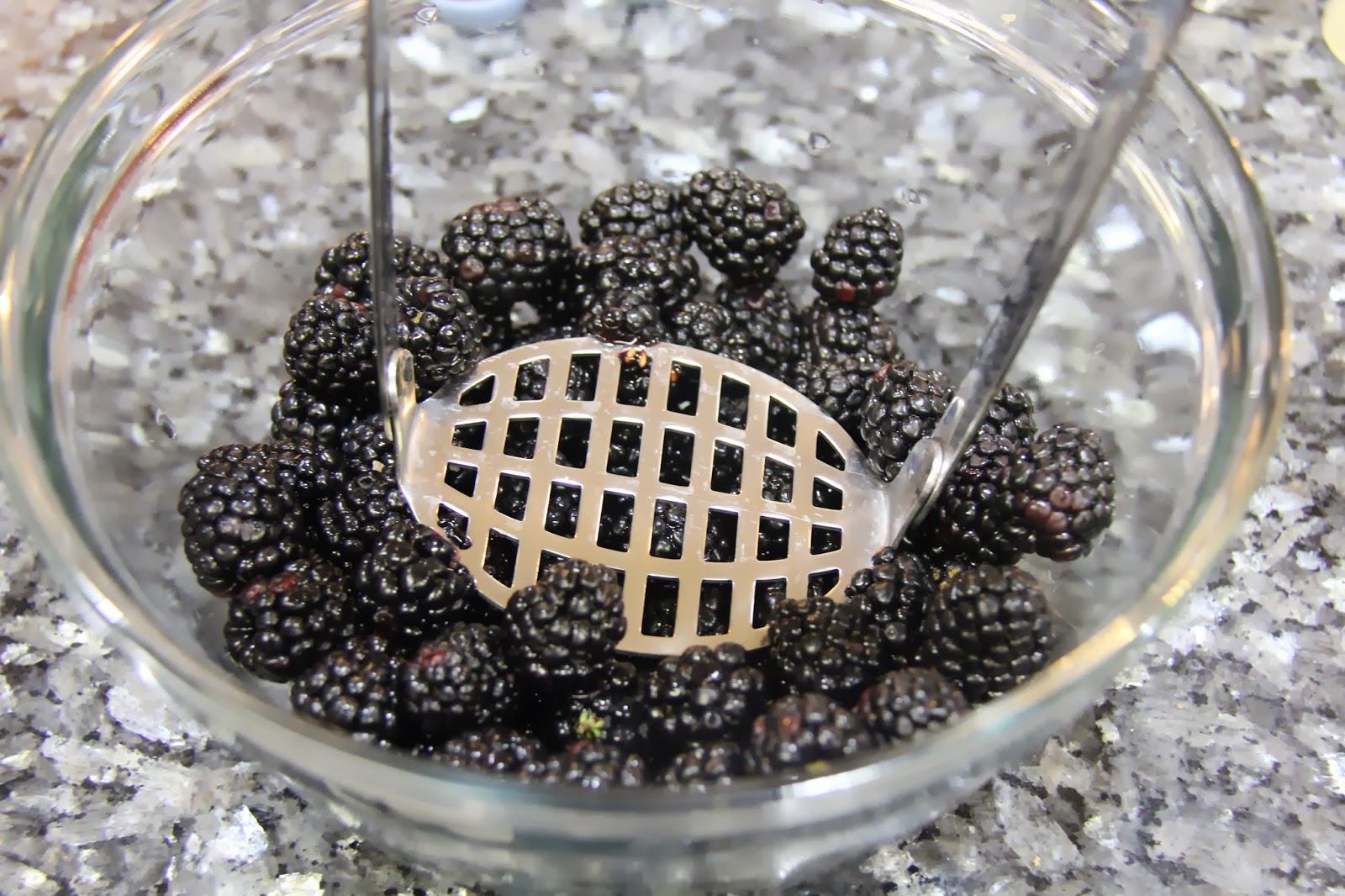2.Crush the blackberries in a bowl.