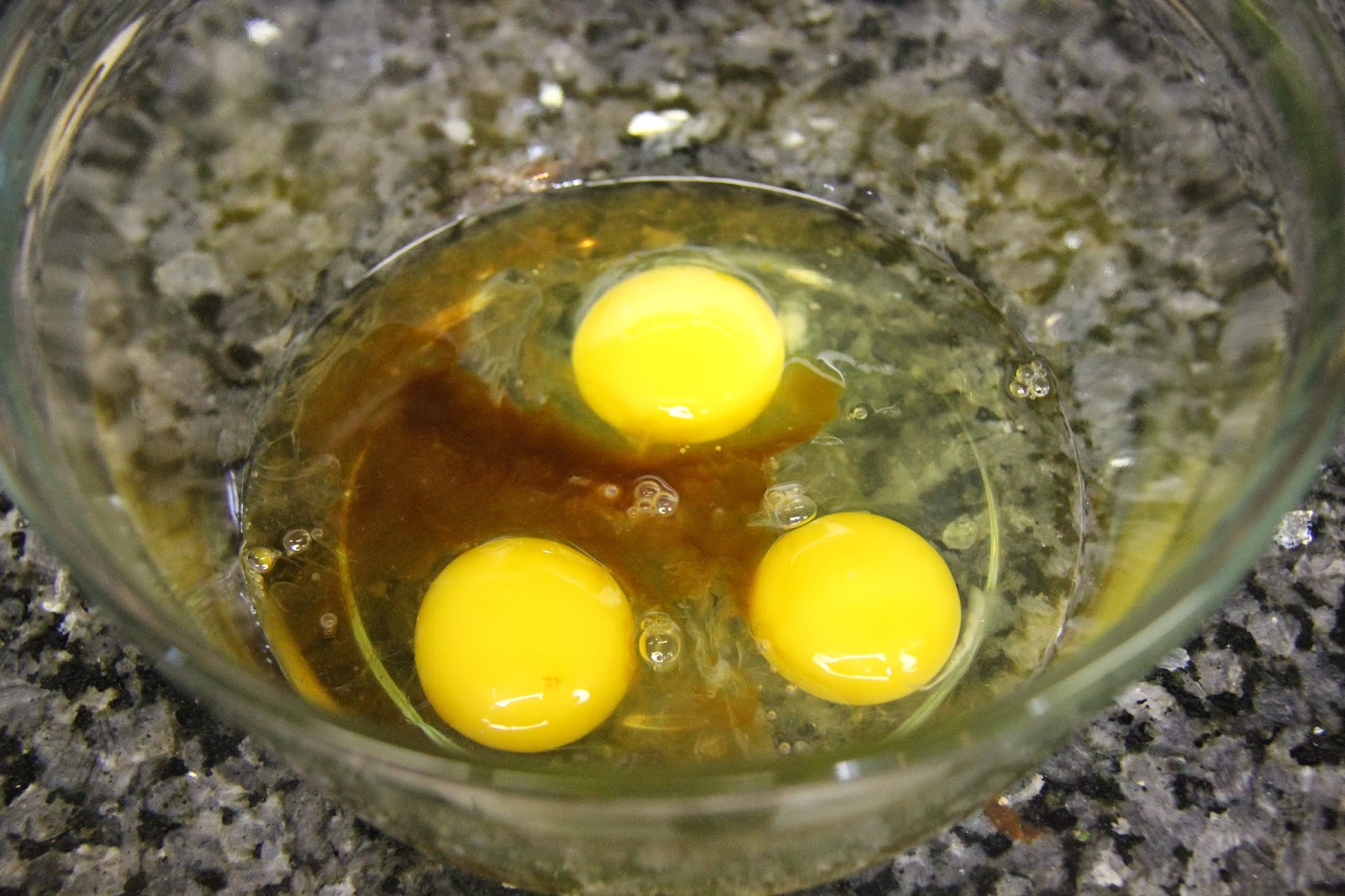 3.In a bowl, take the eggs, rum, vanilla, almond extract and whisk until lightly foamy.