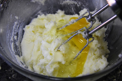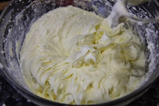 6. Add in the yogurt mixture until combined. Add the flour 1 cup at a time and mix until combined.