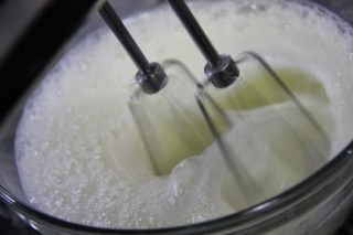 4.In a separate bowl whisk the egg whites until soft peaks form.