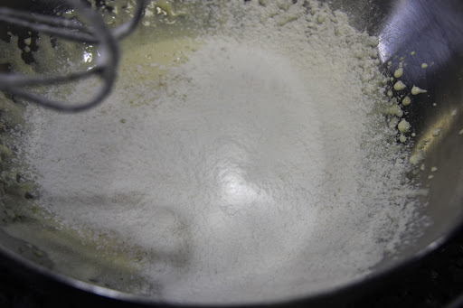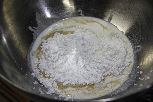 5.Add the flour to the egg yolk mixture and mix until combined.