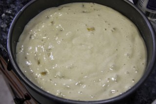 7.Transfer the mixture into the baking pan and bake for 45 minutes(if using springfoam pan) 35 minutes if using 2 9 inch pans.
