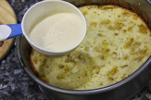 If not layering it you can directly pour the tres leches liquid on top of the cake in the pan and let it absorb the liquid for about half hour to 1 hour.