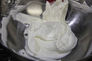 11.Add the heavy cream, sugar, gelatin and vanilla and whisk until medium peaks form.Remember gelatin should be in liquid form before mixing into the heavy cream.