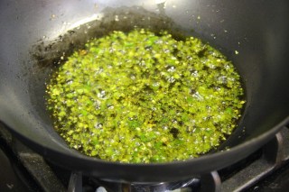 1.Take the oil from the pesto and heat it in the pan. If using homemade pesto add 1 tablespoon of olive oil to a pan and heat. Add the green chili and saute for 1 minute on medium flame.