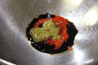 3.In a bowl, take the rest of the sauces i.e. the ketchup, green chili sauce, soy sauce and sriracha. Adjust salt and mix well.