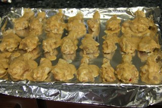 2.Preheat oven to 375 degrees. Place an aluminum foil on sheet trays and place the wings equally spaced on the sheet tray. Bake for 30 minutes on one side on the top rack. Remove and flip them over and bake for 30 more minutes on the top rack.