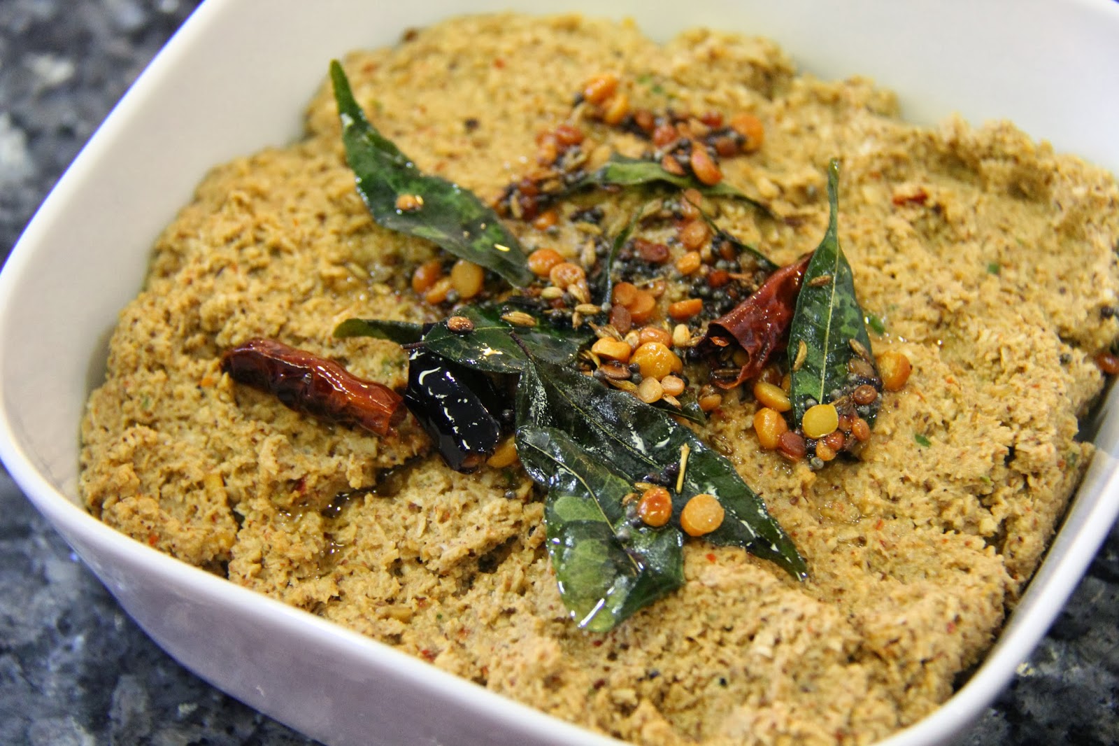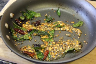 3.Heat 2 teaspoons oil in a pan, add mustard seeds and let splutter then add black gram and let brown lightly and then add curry leaves and let splutter. Transfer the seasoning to the ground coconut and combine.