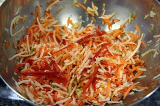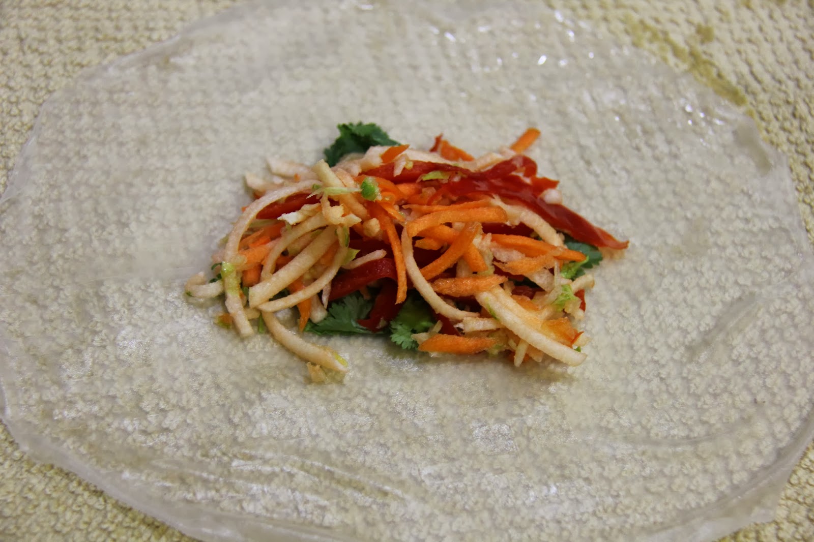 You can also julienne the vegetables to prevent them from falling of the roll.