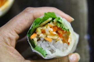 These are also called as summer rolls or goi cuon which is a Vietnamese Dish.It is a mixture of vegetables and meats like cooked shrimp or pork or chicken or tofu rolled in a rice paper and served with a dipping sauce.If you like salads or raw vegetables you will love this dish.This is a great way to include more vegetables into your diet without a lot of calories.
