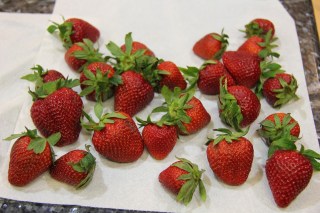 1.Wash and dry the strawberries on a paper towel or dish cloth.