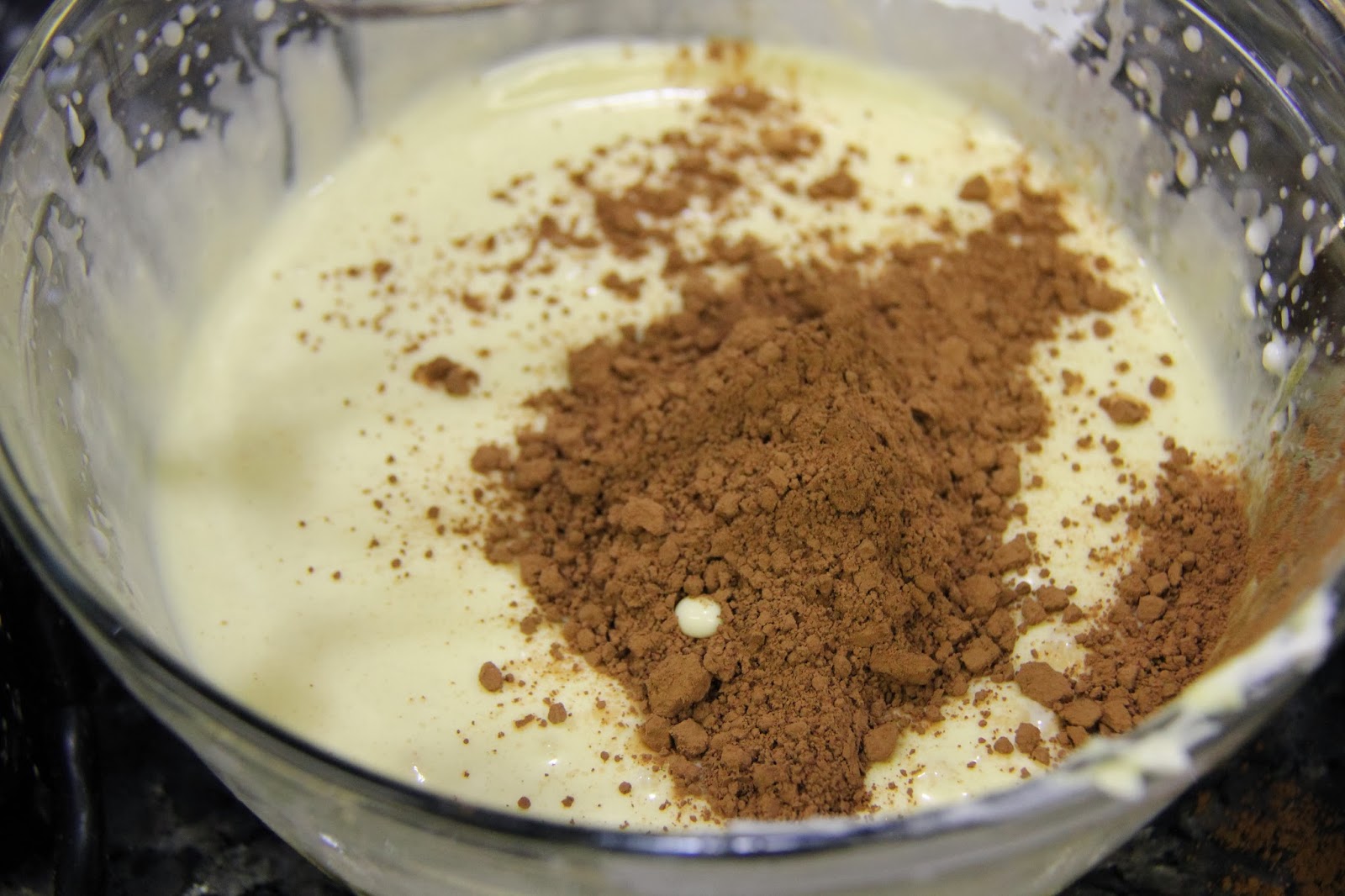 3.Add the cocoa powder and 1 teaspoon coffee powder and combine.