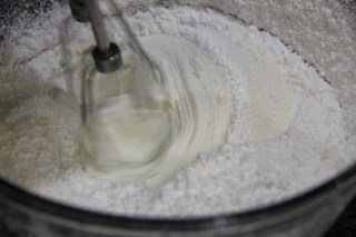 5.Whisk the heavy cream with 1 cup of sugar until stiff peaks form.Add the gelatin to it just about when it starts forming peaks.The gelatin should be liquidy but not hot.