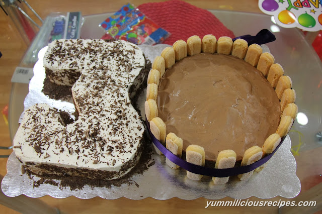 Chocolate sponge cake can be used in cakes where in you need to cut them to shapes or just layer it with icing/cake frosting.This goes with a ton of flavors like white chocolate buttercream,any ganache,dark chocolate icings,strawberry,cherry,raspberry buttercream etc.I made this for my husbands 30th birthday,the number 3 was a chocolate sponge cake with white chocolate icing and the right was a variation of Tiramisu(see recipe here)