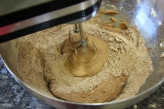 4.Add 1 egg and 1/4th of the flour mixture and mix on slow,add another egg and 1/4 of flour and repeat until all flour and egg are combined.Add Vanilla essence and milk before you add the final batch of flour and mix until combined.Do not overbeat.
