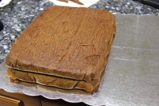 7.Place the bottom layer on the cake sheet and place icing on top and spread it evenly,place the next layer and repeat.This is called as a crumb coat,basically the cake crumbs keep mixing with the icing here and won’t give you a smooth icing.Once you finish this layer,place in the refrigerator for about 1 hour.