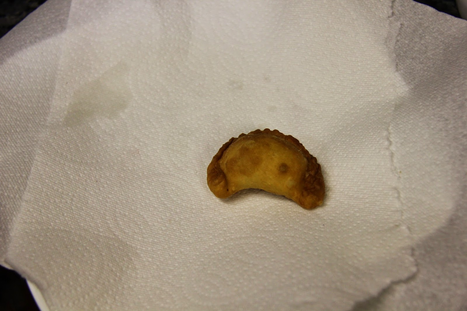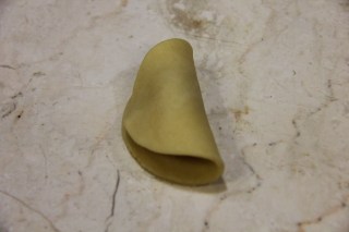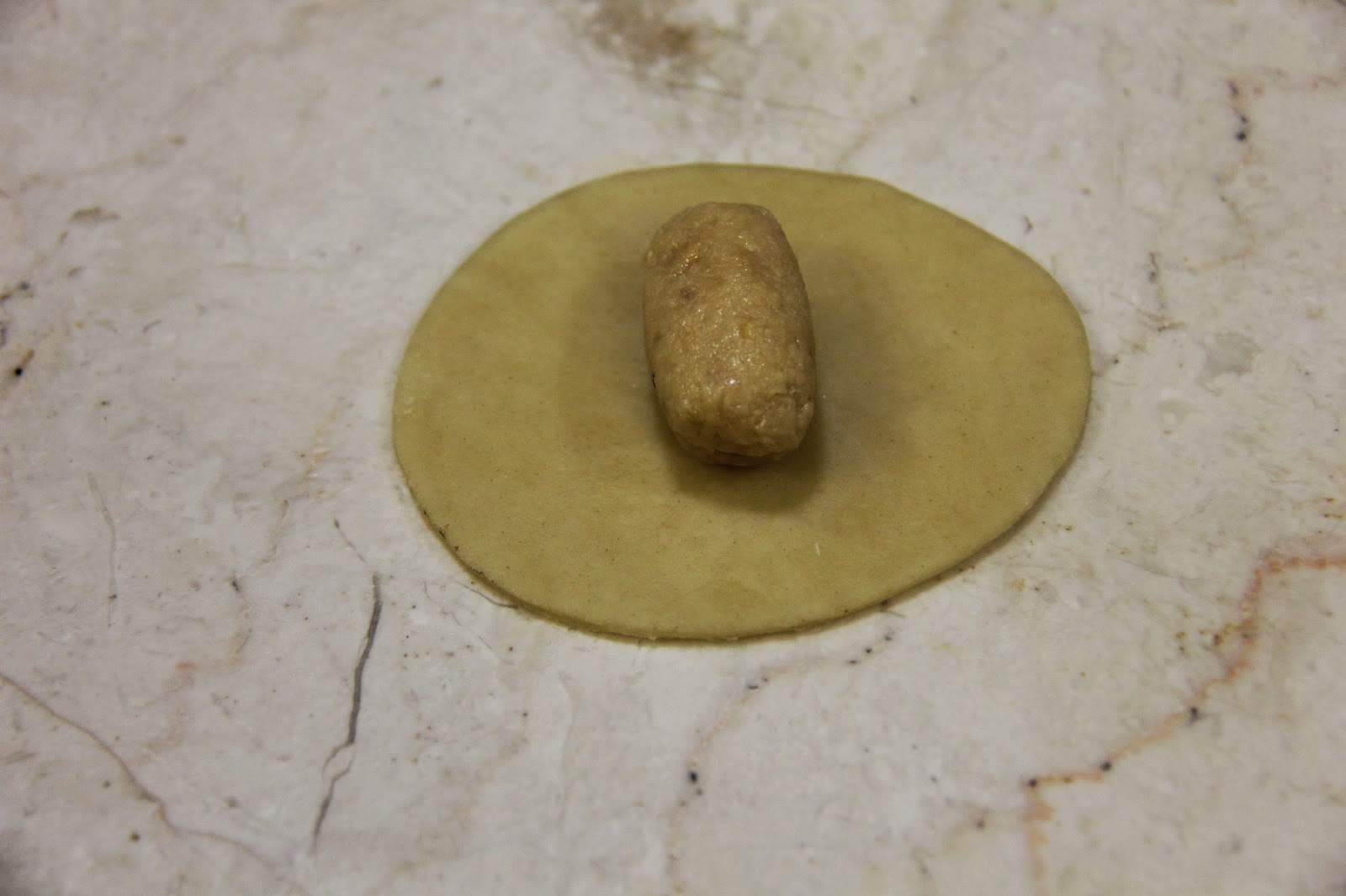 4.Place stuffing in the center and fold it in half.If you have a gujiya press you can use that.