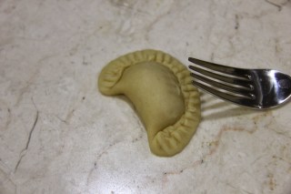 5.Fold in the edges. You can either do this with hand or use a fork to press down and seal the edges. Repeat this with all the remaining dough.