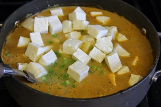 9.Add the paneer cubes and peas and let cookabout 6 minutes and turn off the flame.