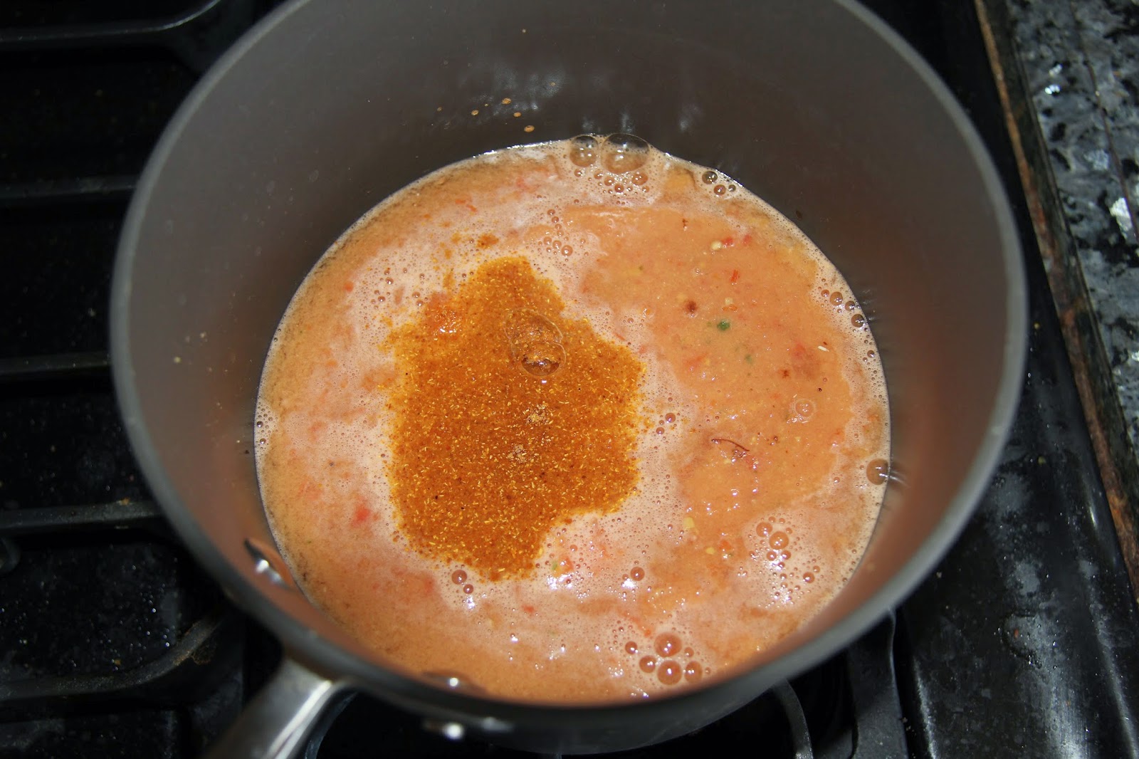 1.Blend the toor dal, green chili and tomato to a puree and start heating the puree in a pan.Add 3 cups water, tamarind paste, salt and bring to a boil.