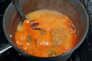 5. Add the tempering to the boiling rasam. Let cook for 2 minutes and turn off the flame. Garnish with Cilantro.