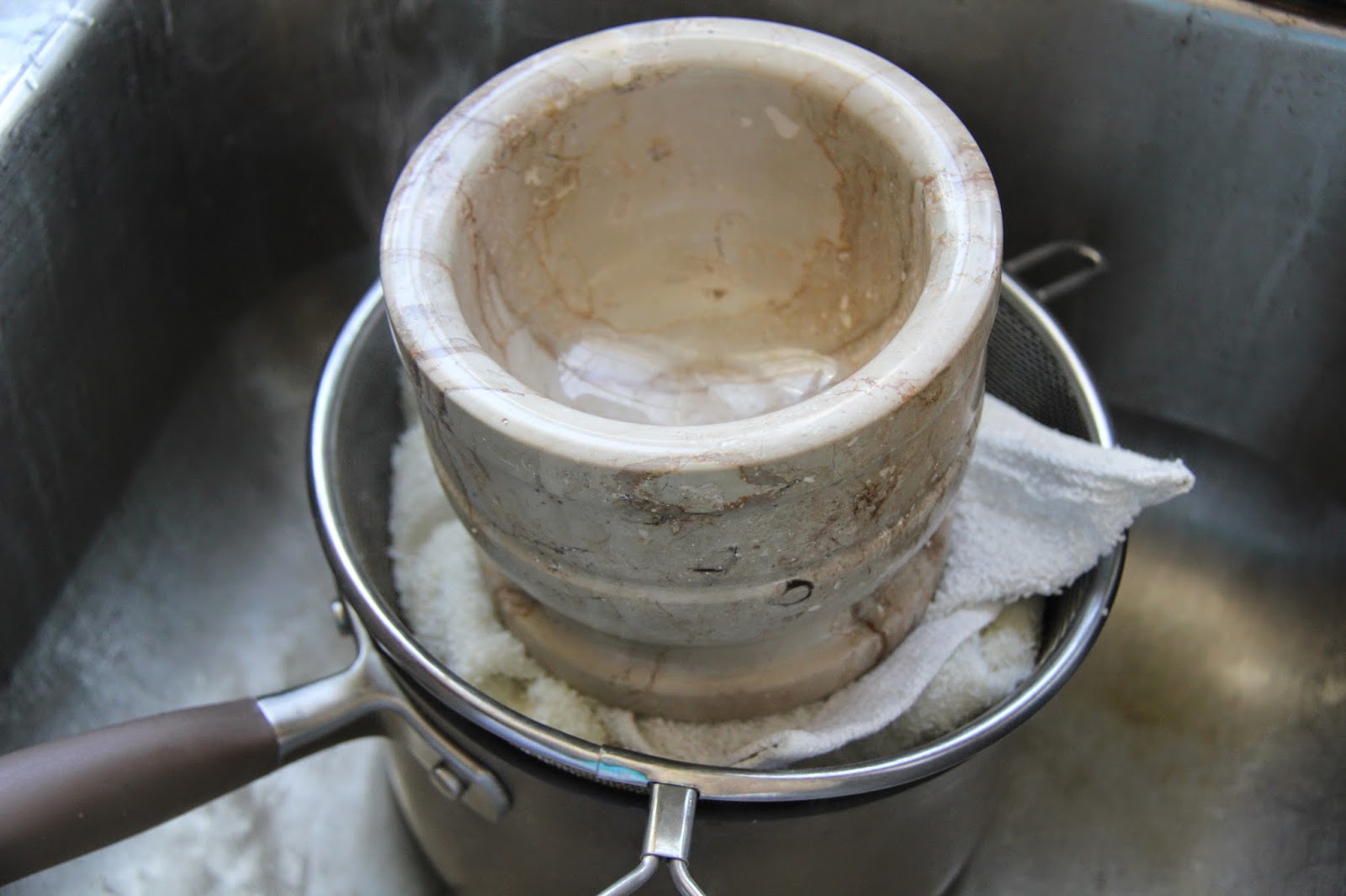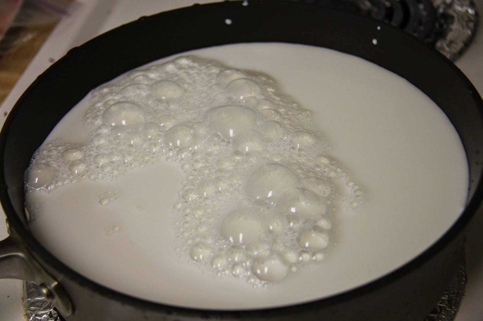 1.Bring the milk to a boil in a large container.