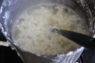 2.Add the lemon juice or vinegar and start stirring,the milk should start curdling.