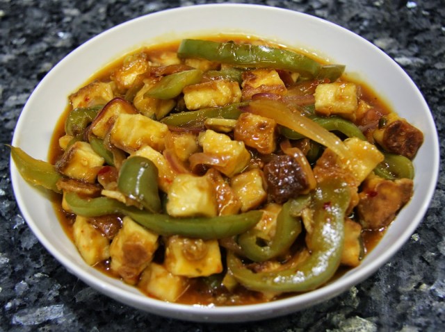 I am a big fan of Indo Chinese Street food.This is one such preparation with paneer tossed in chinese sauces for a sweet,tangy and spicy lip smacking food.