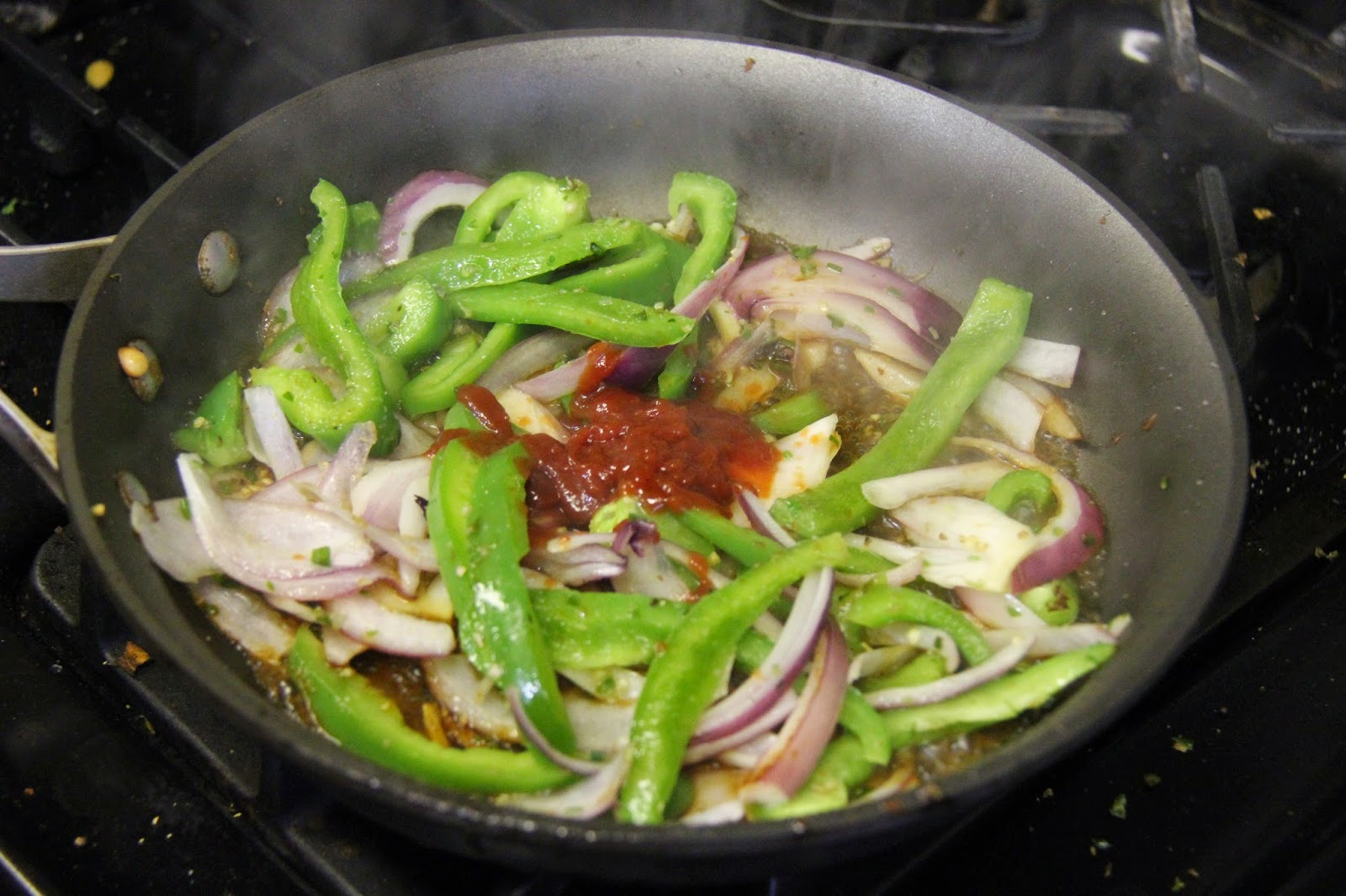 4.In the same pan take the remaining oil and saute the onion, capsicum and green chili(and spring onion if using) for 3-4 minutes on medium-high flame stirring continuously.
